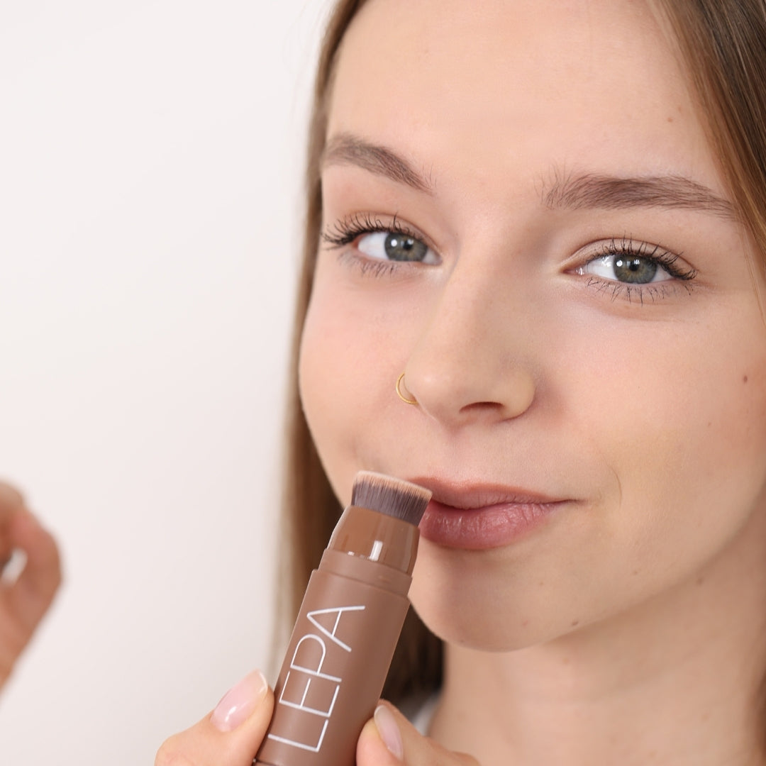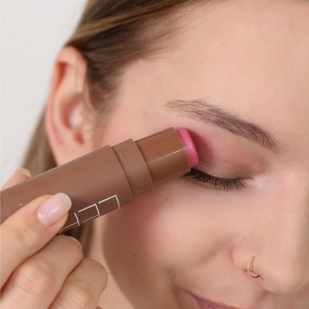3 IN 1 STICK ima kremasto teksturo, ki se zlije s kožo in ustvari naraven, sijoč zaključek.