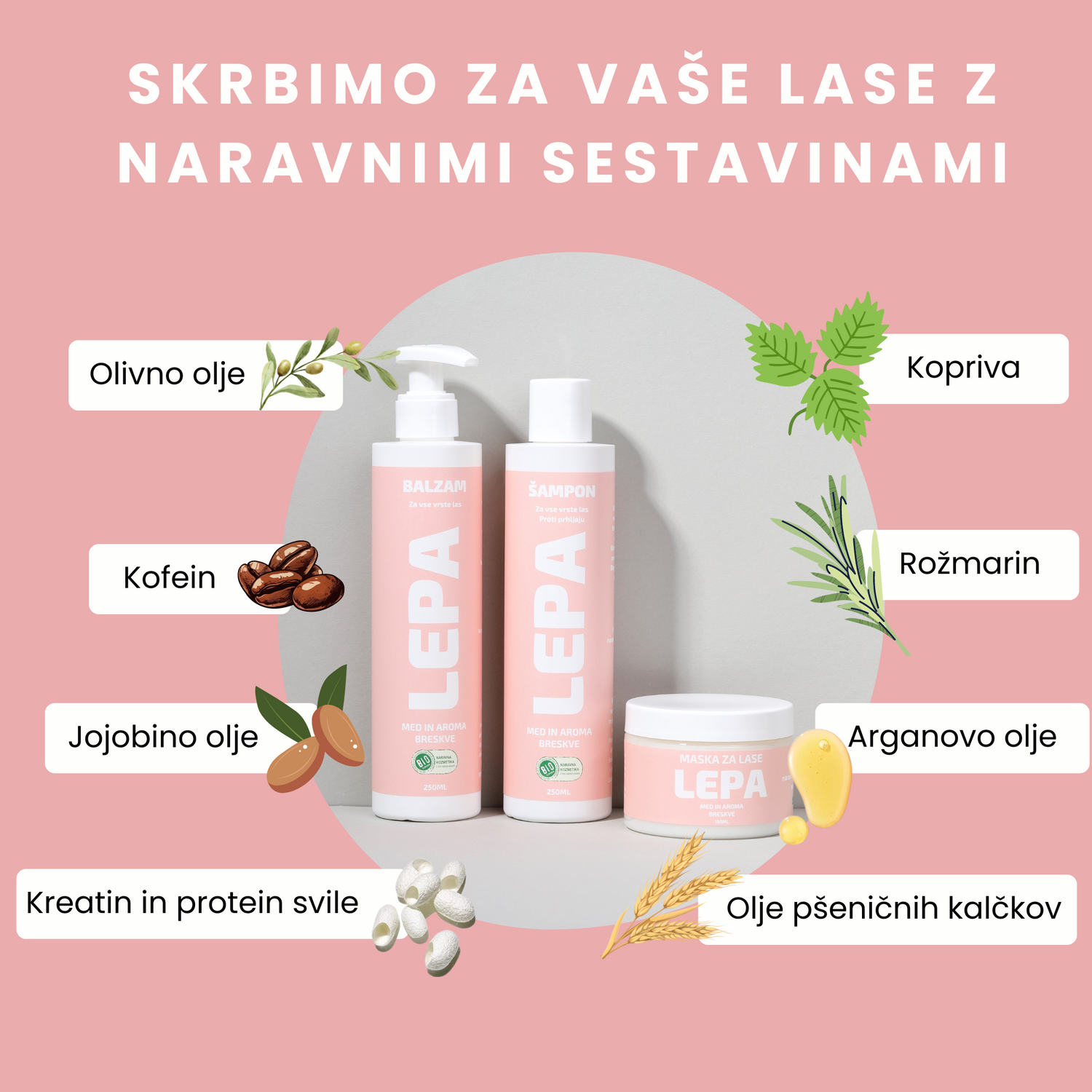 Z našo blagovno znamko Lepa ne izbirate le izdelkov za lase, temveč tudi naravni in zdrav pristop k lepoti. Pridružite se nam na poti do zdravih, sijočih las in uživajte v rezultatih, ki trajajo!